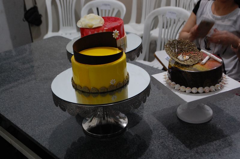 O curso de tortas, que foi realizado no dia 24, contou com técnicas de cobertura com ganache, flores de chocolate, pinturas aveludadas, cobertura espalhada, cobertura craquelada, nivelamento e Arabescos.