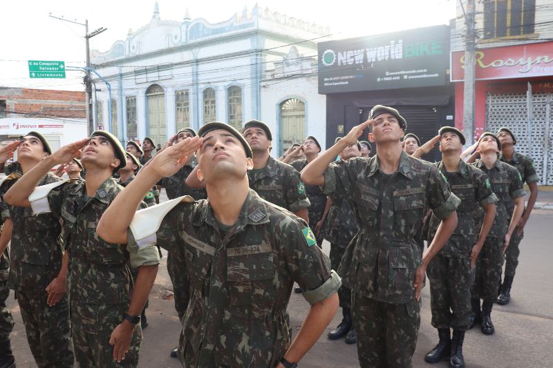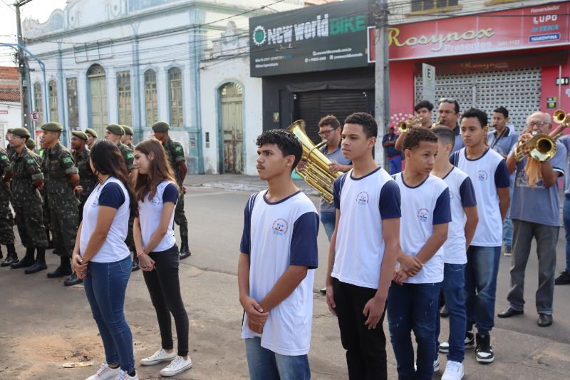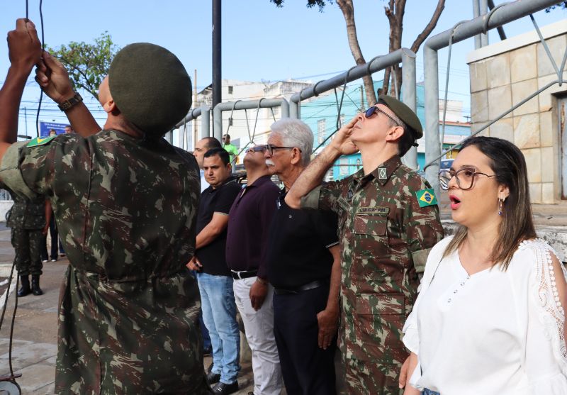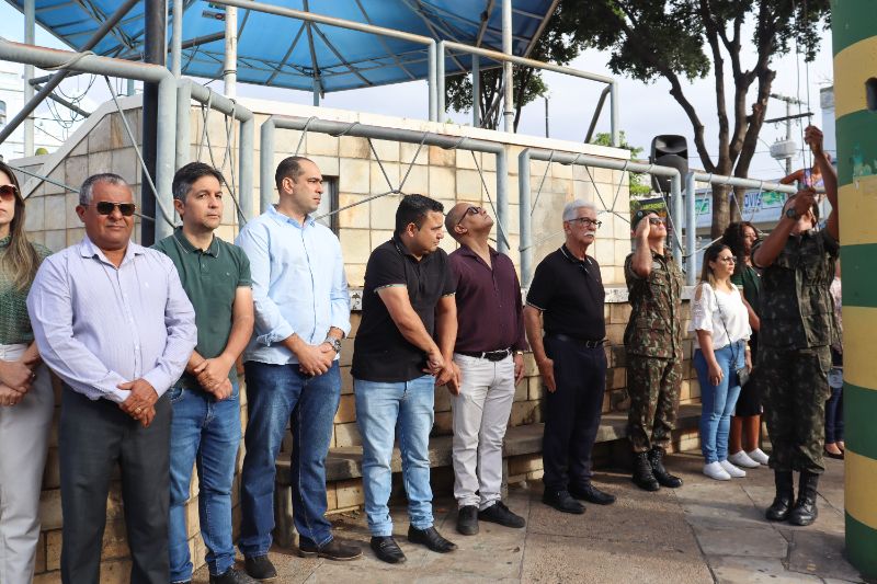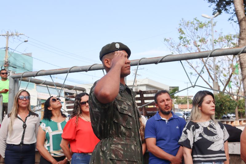 Ainda assim, a prefeitura realizou a solenidade de troca e Hasteamento da Bandeira em comemoração a Independencia do Brasil na manhã desta quinta-feira, com a presença do prefeito Eduardo Vasconcelos, secretários, Tiro de Guerra, Guarda Municipal, Lira Ceciliana e alguns alunos e educadores que representaram as escolas municipais.