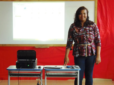 A professora Sandra Pereira agradeceu a diretora Sônia Oliveira pelo apoio ao projeto