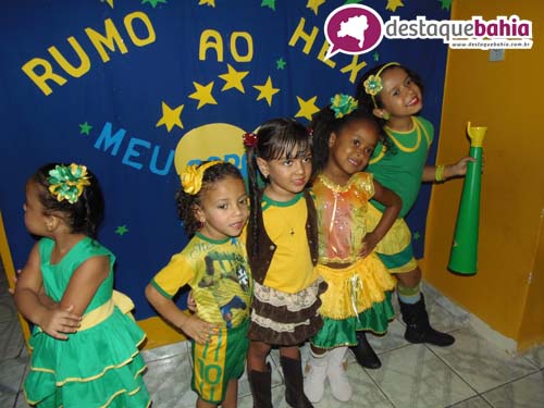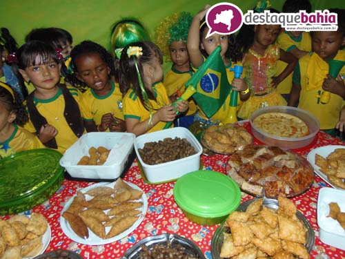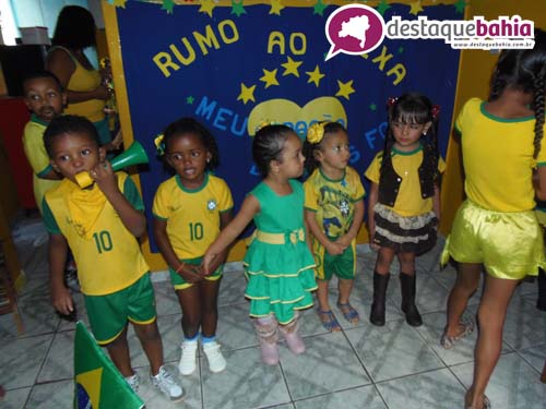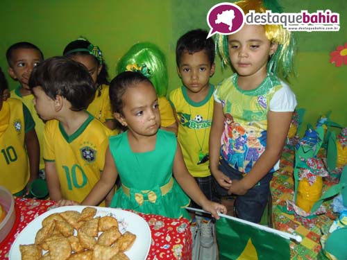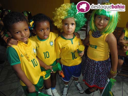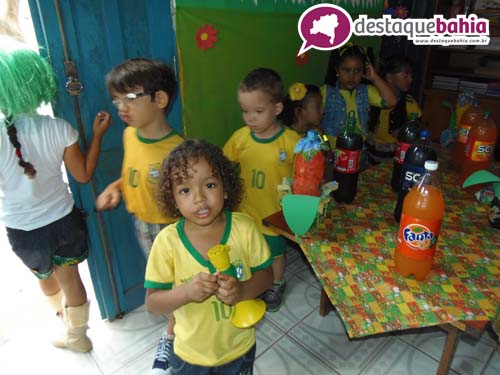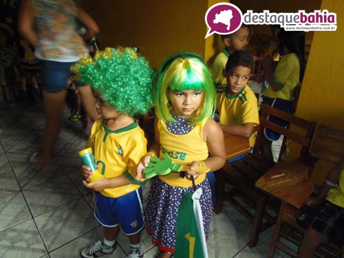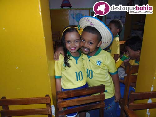 Aproveitando o clima de Copa do Mundo e São João, a garotada cairam na folia vestidos á caracter.