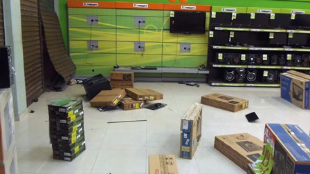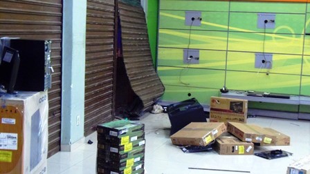 Mais de 15 meliantes, segundo informações dos seguranças, quebraram uma porta de vidro de uma grande loja de calçados e confecções e saquearam diversos produtos, dentres eles, dezenas de celulares que estavam nas vitrines.