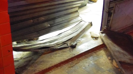 Proprietários e funcionários estiveram fazendo a limpeza dos vidros que ficaram espalhados pela loja, devido a porta que foi quebrada.