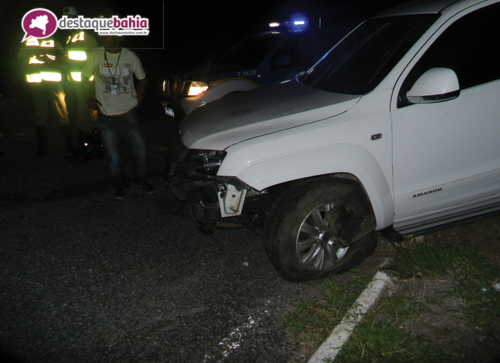 O motorista Cézar Augusto Rocha, que viajava sentido Vitória da Conquista/Caetité, para não colidir frontalmente com outro veiculo após se deparar com a rotatória, acabou jogando o carro que conduzia (uma Amarok) no canteiro.
