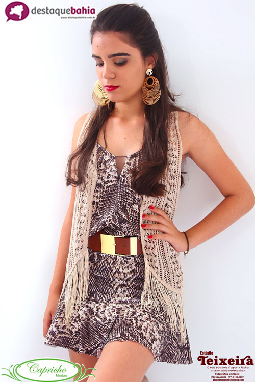 Capricho Modas, o lugar ideal para quem busca seguir as tendências da Moda. Em todas as estações do ano, a Capricho tem sempre grandes novidades, pois, ser feliz com estilo é o que é o que a CAPRICHO proporciona. Para este Fim de Ano, a Capricho Modas disponibiliza aos seus clientes grandes novidades, que farão você ser o centro das atenções neste mês festivo. A jovem estudante brumadense, Stéphane Correia, escolhida pelos internautas do site Destaquebahia como a GAROTA DESTAQUE deste mês, em um lindo ensaio fotográfico mostra um pouco, das grandes tendências da moda que a Capricho oferece; confira o ensaio. ESTRELANDO: Stéphane Correia FOTÓGRAFO: Jeude Teixeira CABELO E MAQUIAGEM: Nalva Salvador (Salão da Nalva) LOOK: Capricho Modas