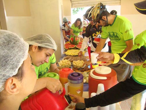 Os ciclistas tiveram direito a delicioso café da manhã e almoço, além de participarem do plantio de diversas mudas de plantas, ao longo do percurso.